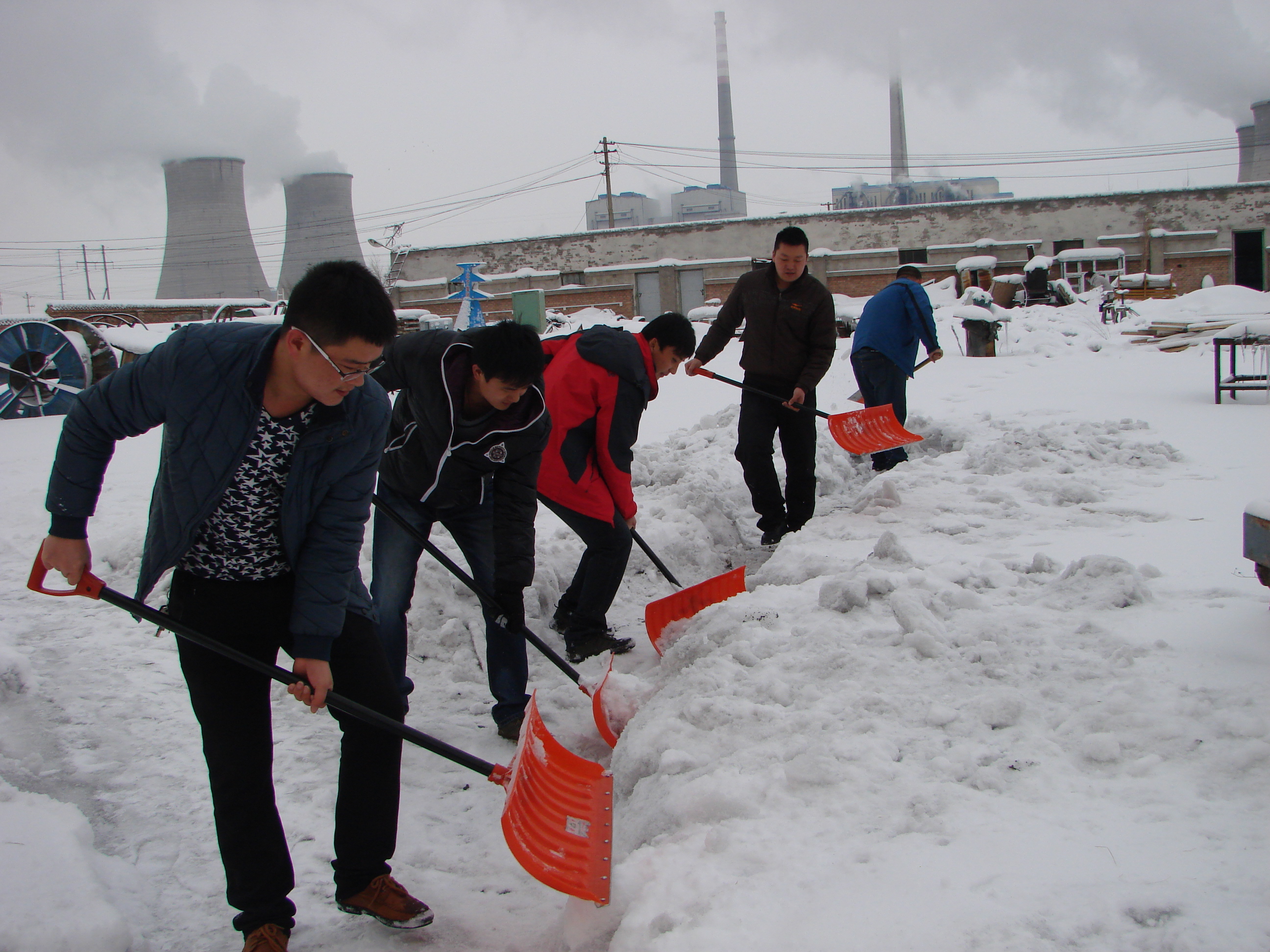圖為電安公司團支部書(shū)記閆磊帶領(lǐng)團員青年清掃積雪。