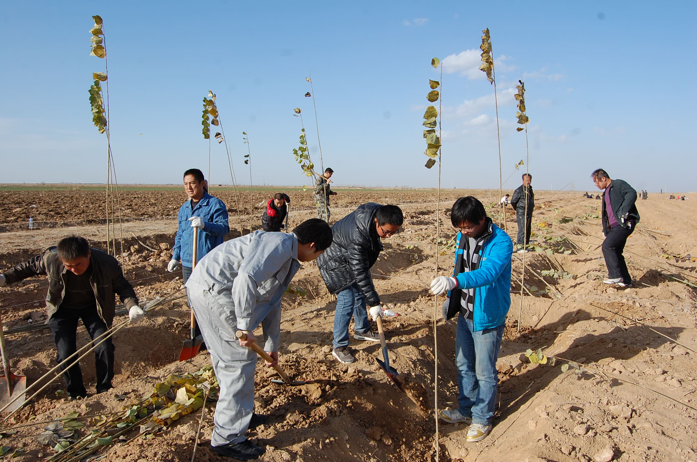 為抓住秋季植樹(shù)造林的大好時(shí)機,進(jìn)一步加快植樹(shù)造林的步伐,11月5日北方建設集團公司組織100余名干部職工迅速投入到全民義務(wù)植樹(shù)的活動(dòng)中。在植樹(shù)現場(chǎng),呈現一派熱火朝天的景象,公司領(lǐng)導們積極參加,嚴格造林標準,嚴把質(zhì)量關(guān),大伙們挖坑、培土、栽下一株株樹(shù)苗,經(jīng)過(guò)一天的奮戰,圓滿(mǎn)完成了植樹(shù)造林任務(wù)。