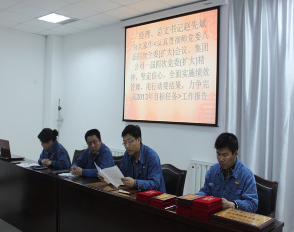 4月2日,北方建設集團獨山子分公司一屆四次職工代表大會(huì )在四樓會(huì )議室正式召開(kāi),會(huì )議由工區總支副書(shū)記兼工會(huì )主席葉兆英主 持。會(huì )議上工區經(jīng)理兼總支書(shū)記趙先斌作〈認真貫徹師黨委八屆四次全委(擴大)會(huì )議,集團公司一屆四次黨委(擴大)會(huì )議精神;堅定信心、全面實(shí)施、績(jì)效管理、用行動(dòng)要結果、力爭完成2013年目標任務(wù)〉的工作報告,并與各科室負責人及項目經(jīng)理簽定目標責任書(shū)。技術(shù)總負責龍希彬宣讀〈生產(chǎn)經(jīng)營(yíng)管理辦法〉實(shí)施細則,最后工區總支副書(shū)記兼工會(huì )主席葉兆英作〈凝心聚力履行職責 落實(shí)責任 敢于擔當 團結共進(jìn) 努力完成任務(wù)指標〉工作總結。
