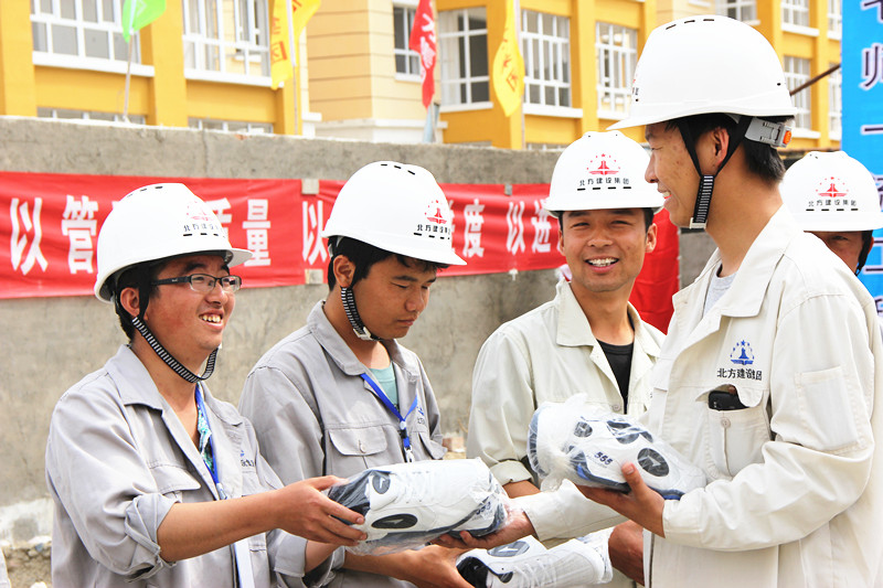 圖為團委向106項目部贈送運動(dòng)鞋