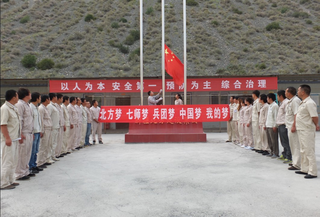 (王清軍)7月5日清晨,集團直屬項目三部黨支部在奎屯河施工現場(chǎng)開(kāi)展“我的北方夢(mèng)、七師夢(mèng)、兵團夢(mèng)、中國夢(mèng)”主題升旗儀式。利用升國旗儀式向項目部做活動(dòng)動(dòng)員,讓項目部員工了解“我的中國夢(mèng)”主題教育活動(dòng)內容及活動(dòng)安排,宣傳“中國夢(mèng)”提出的背景及內涵等,激發(fā)愛(ài)國主義熱情,并針對現今維穩形勢,要求大家立足自己的工作崗位,管好施工現場(chǎng),為維穩工作做出自己的貢獻。